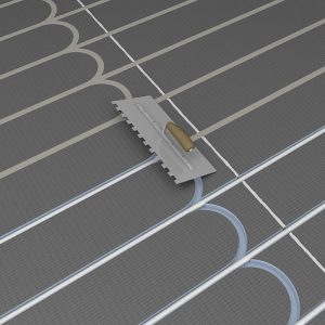 Pokládka běžně dostupných vodovodních trubek Ø16 mm a zalití flexibilním lepidlem ARDEX X 90.