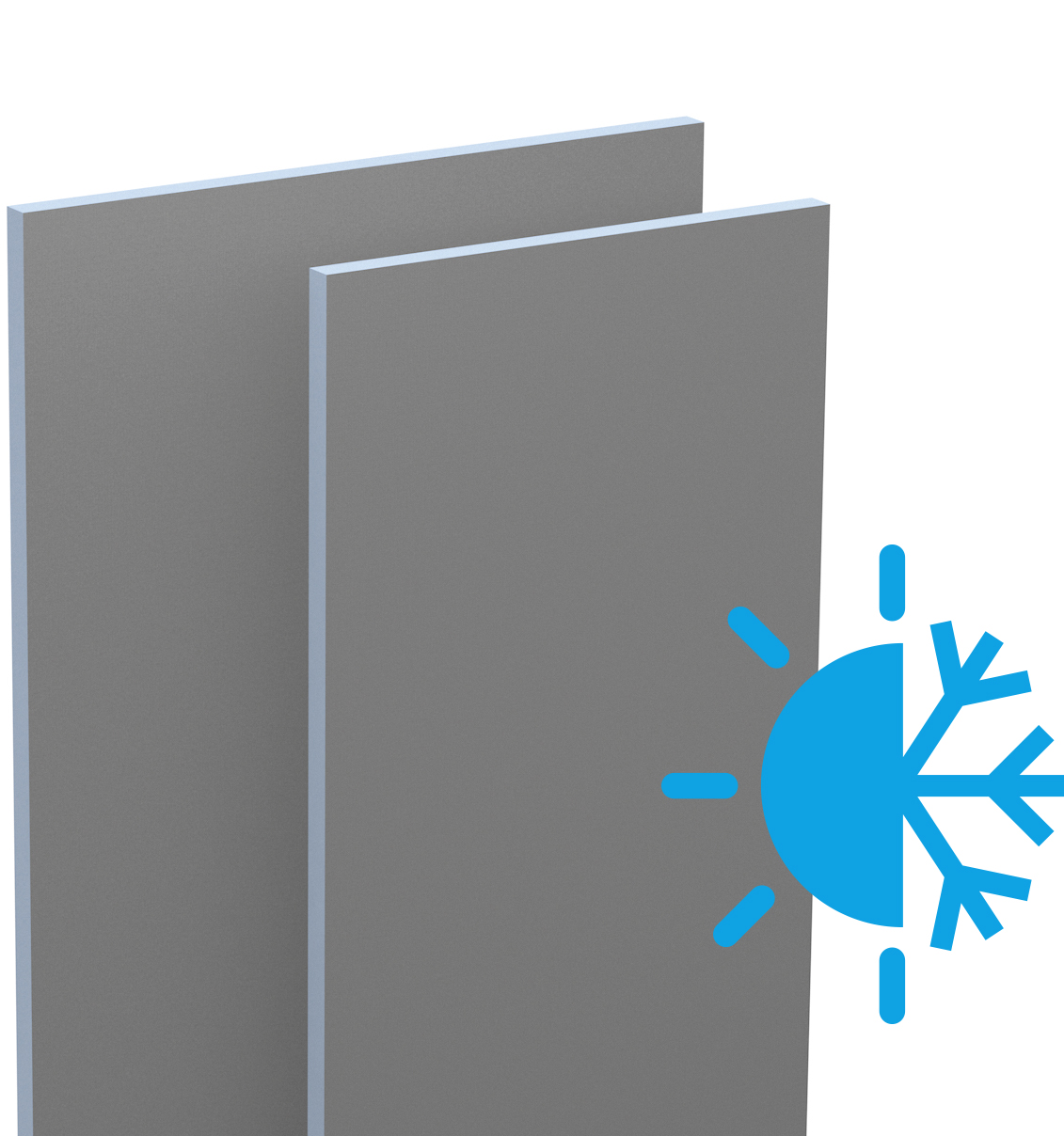 wedi Bauplatte není pouze vodotěsný, ideální základ pro omítky a dlaždice, ale má také tepelně izolační vlastnosti. V závislosti na vnější stěně může deska wedi již o tloušťce 20 mm snížit tepelné ztráty přibližně o polovinu.