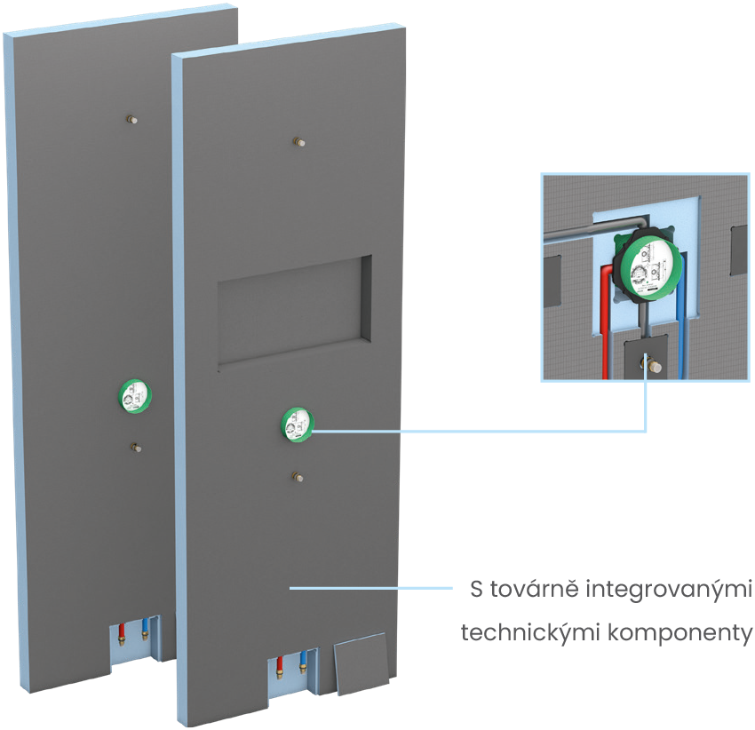 Tento stabilní stěnový element s integrovanou nikou je ideální jako sprchová příčka. Velmi snadno se instaluje a lze jej ihned obkládat. Jak celkové rozměry, tak velikost niky lze přizpůsobit vašim individuálním potřebám.