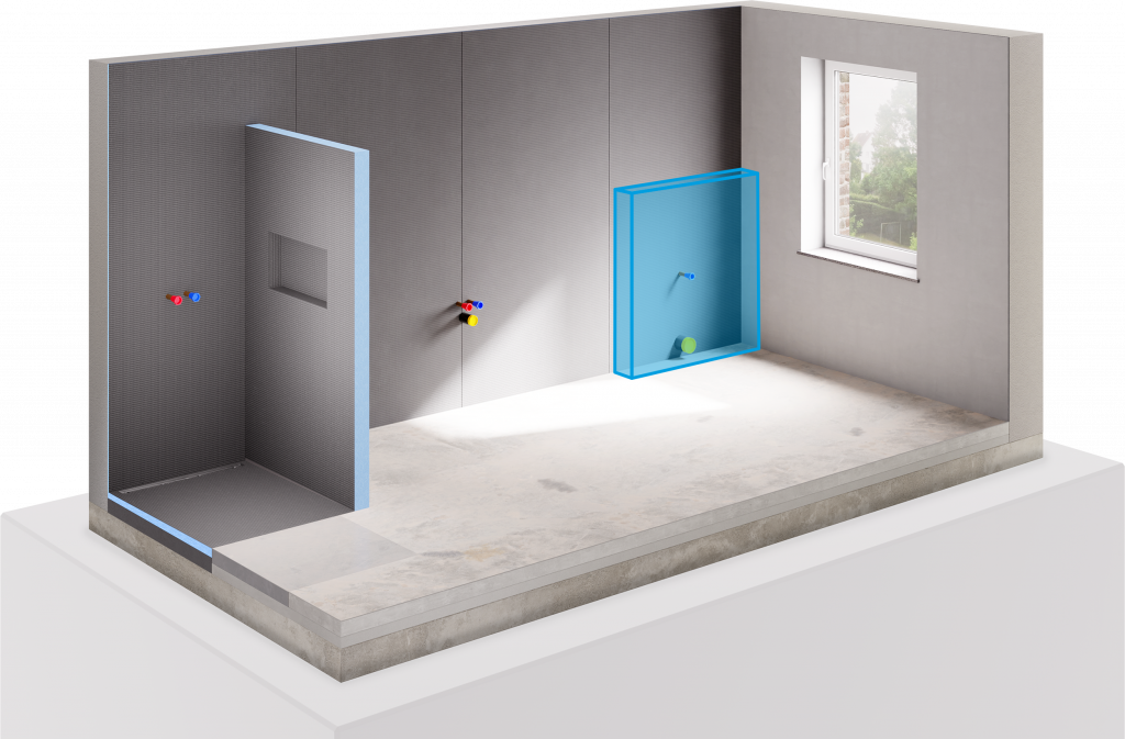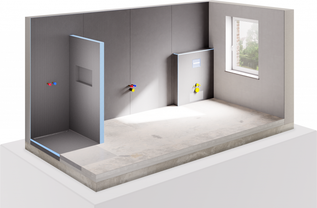wedi I-Board Plus má integrovanou výztužnou desku z výroby – je tedy vhodný i pro omítání (tloušťka vrstvy ≥ 3 mm) nebo obklady mozaikou (od 2 × 2 cm).