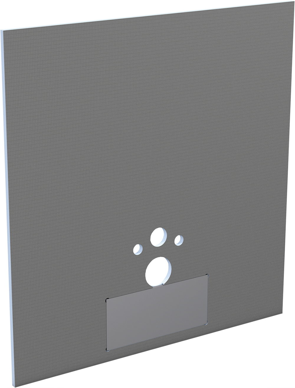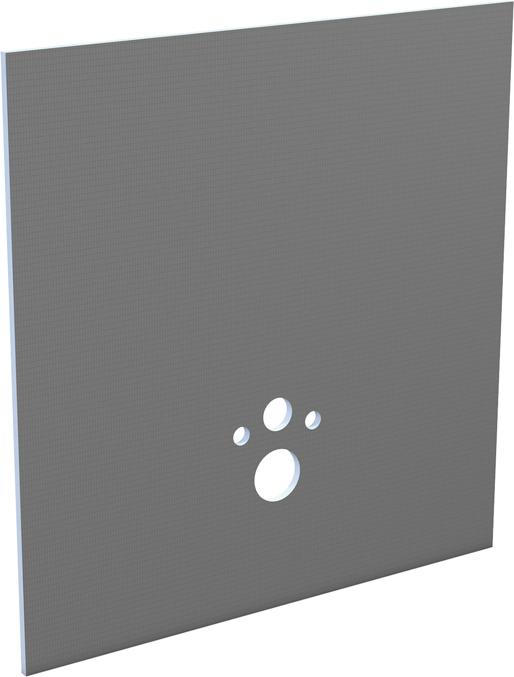 wedi I-Board Plus má integrovanou výztužnou desku z výroby – je tedy vhodný i pro omítání (tloušťka vrstvy ≥ 3 mm) nebo obklady mozaikou (od 2 × 2 cm).