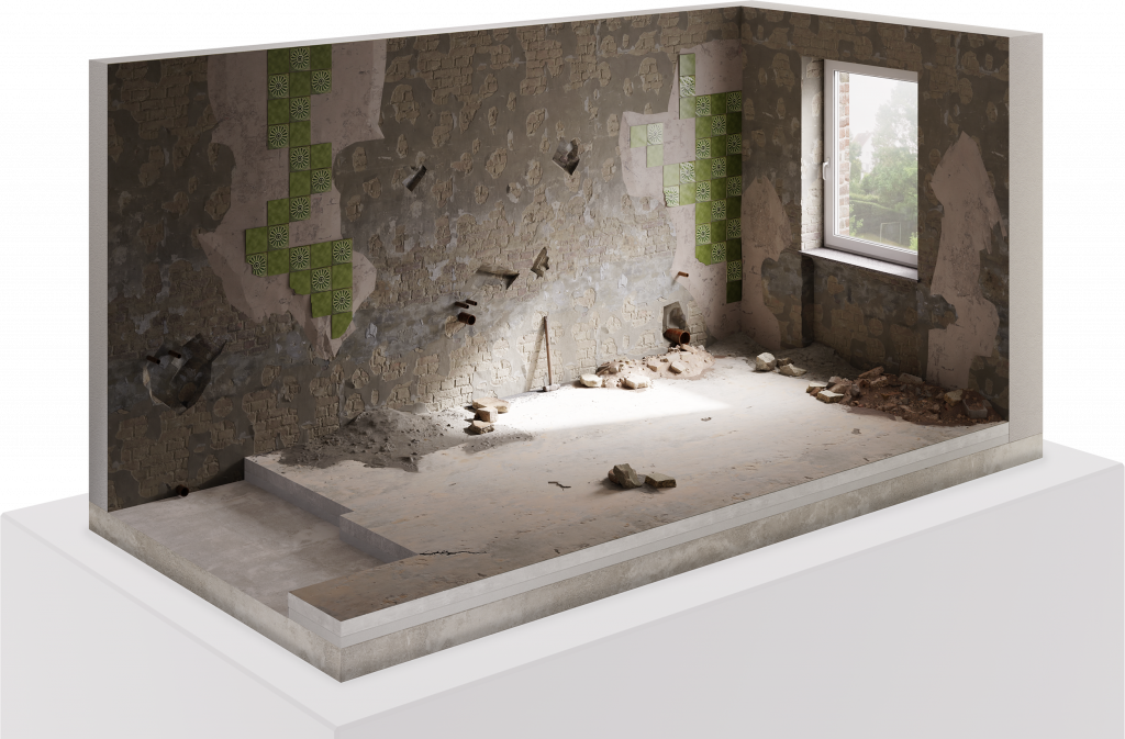 Step by step, we’ll show you how to overcome your renovation challenges. What happens when the old tiles and sanitary facilities are gone? What do I do if there are broken bricks on the walls or adhesive residues? Each step is described in detail, from the subsurface preparation to the shower area to the surfaces and linked to the appropriate products.