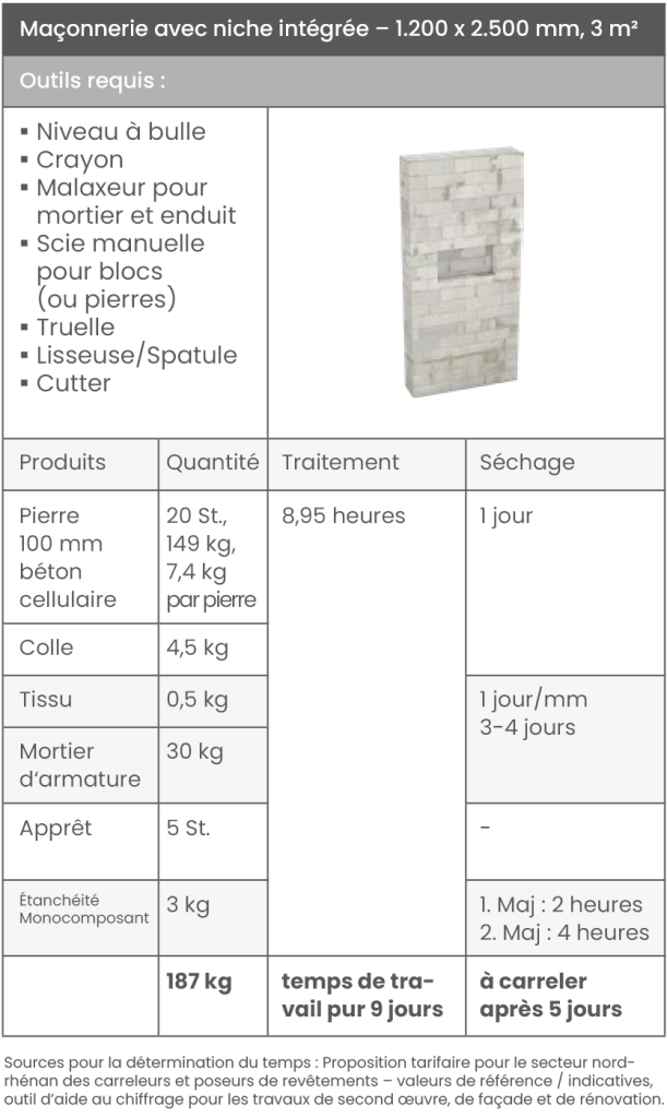 „Nous avons toujours fait du maçonné“ ou encore „trop cher“ – de nombreux professionnels restent attachés aux méthodes traditionnelles et préfèrent construire des cloisons en maçonnerie, en béton cellulaire ou avec des profilés de cloison sèche, plutôt que d’opter pour les nouvelles solutions murales wedi, pourtant bien plus rapides à mettre en œuvre. La comparaison directe montre cependant que les avantages supposés des cloisons traditionnelles sont bien souvent infondés. Les paramètres suivants sont comparés : Les paramètres comparés incluent la quantité et la nature des matériaux, ainsi que les temps de mise en œuvre et de séchage. Gagnez du temps sur le chantier et travaillez de manière efficace, simple et sécurisée – grâce aux solutions murales de haute qualité signées wedi.